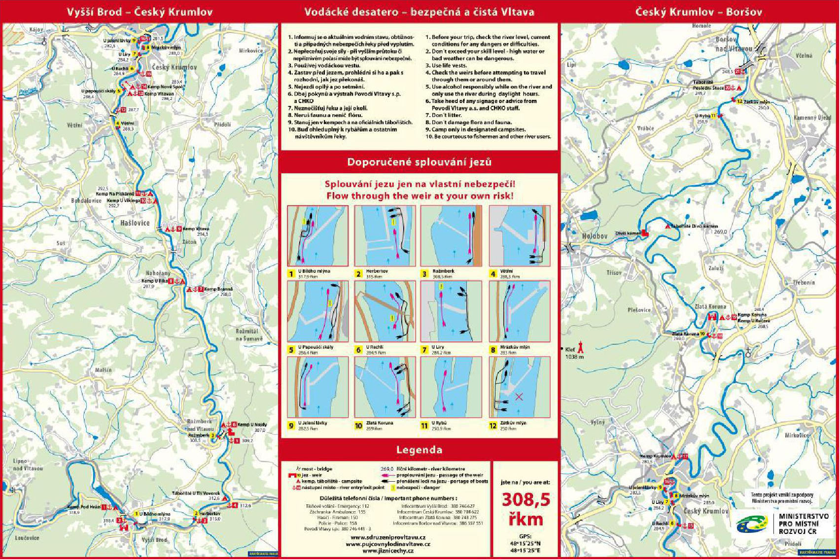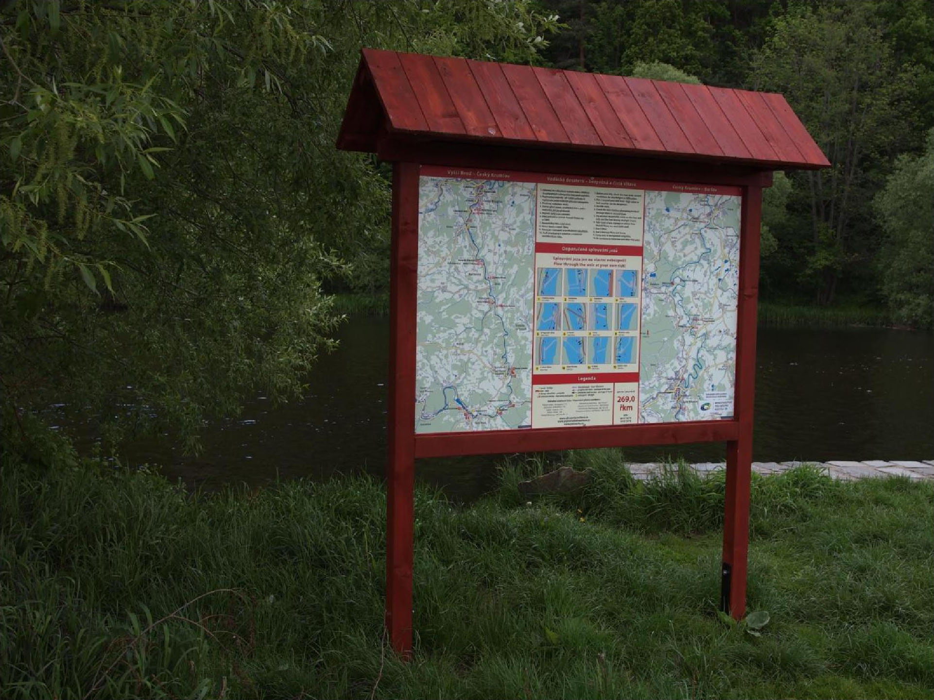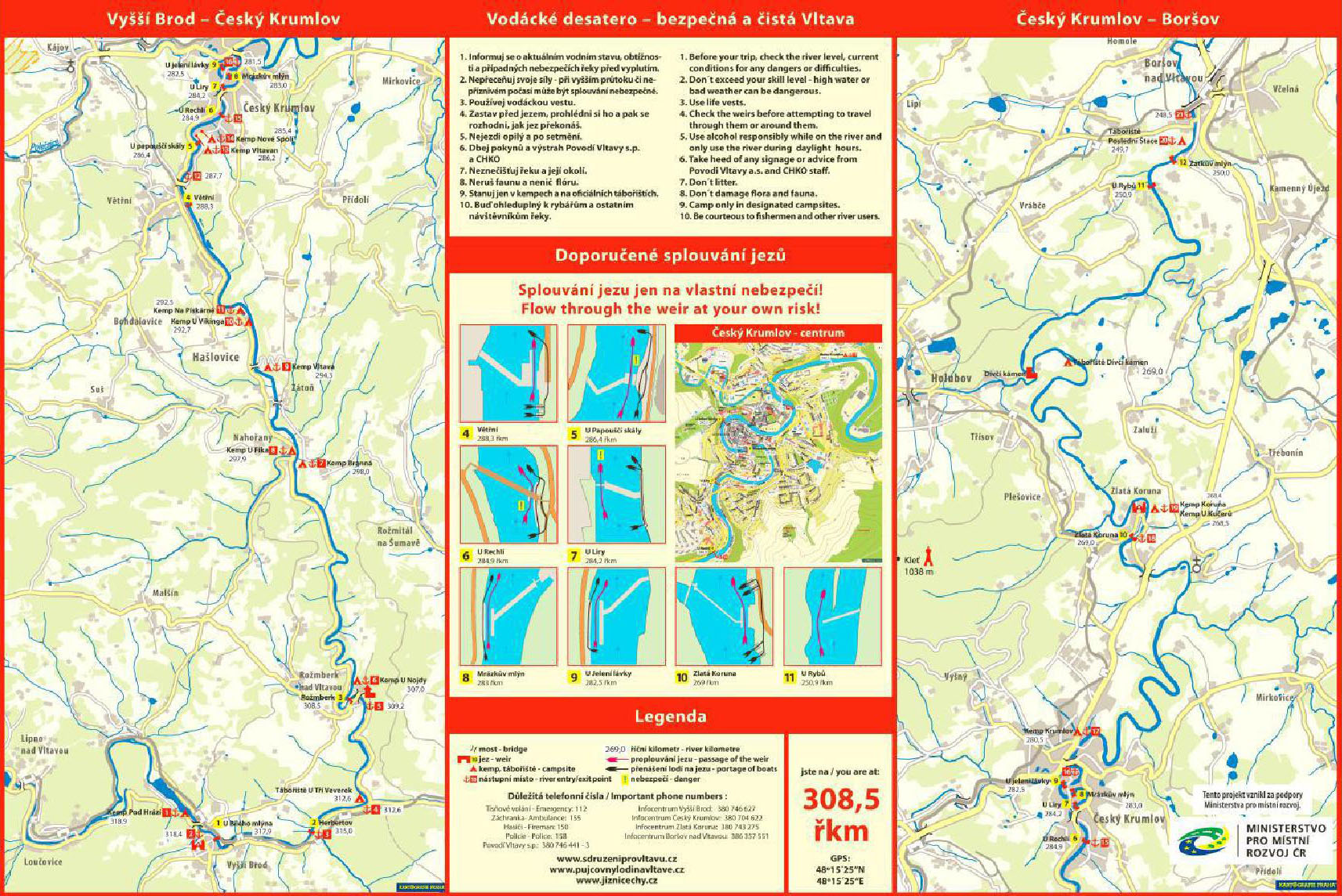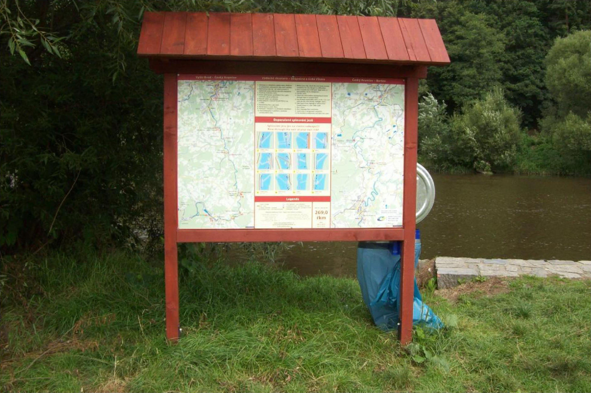 Bylo osazeno celkem 33 ks informačních tabulí - map velikosti 1,5 m x 1,0 m na dřevěných konstrukcích nebo na objektech na tábořištích (občerstveních) v úseku Vyššší Brod – Boršov nad Vltavou (kempy, jezy a další důležitá místa). Mapy jsou dvojího typu. Jeden typ má zakresleny všechny jezy v úseku Vyšší Brod – Boršov nad Vltavou, ten je umístěn v úseku Vyšší Brod – Boršov nad Vltavou mimo okolí Českého Krumlova, druhý typ má zvýrazněné centrum Českého Krumlova a je umístěn v jeho okolí. Na mapě jsou znázorněny jezy včetně doporučených průjezdů a způsobů řenášení, GPS souřadnice a zásady bezpečného a slušného chování na řece.
