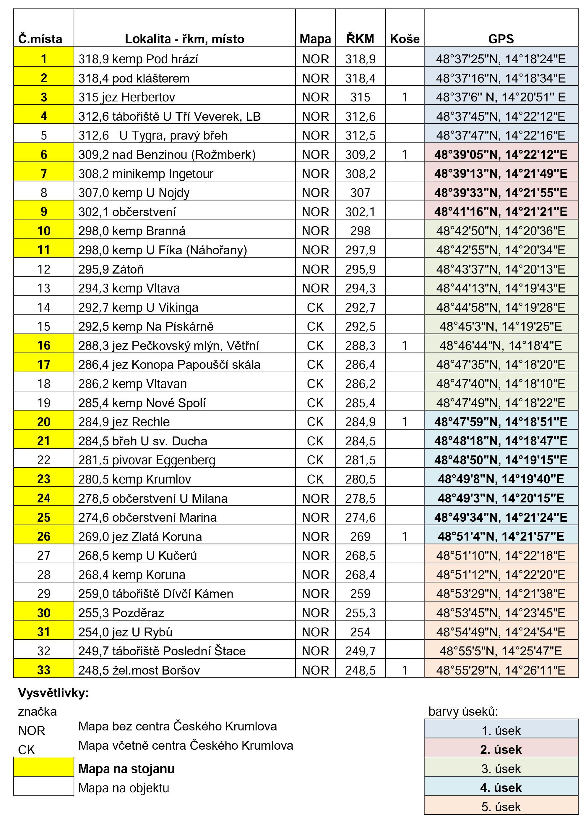 V úseku Vyší Brod – Boršov nad Vltavou bylo osazeno celkem 29 ks kilometrážních tabulí velikosti 600mm x 400mm s údajem vzdálenosti a času k nejbližšímu tábořišti pro snadnější orientaci vodáků.