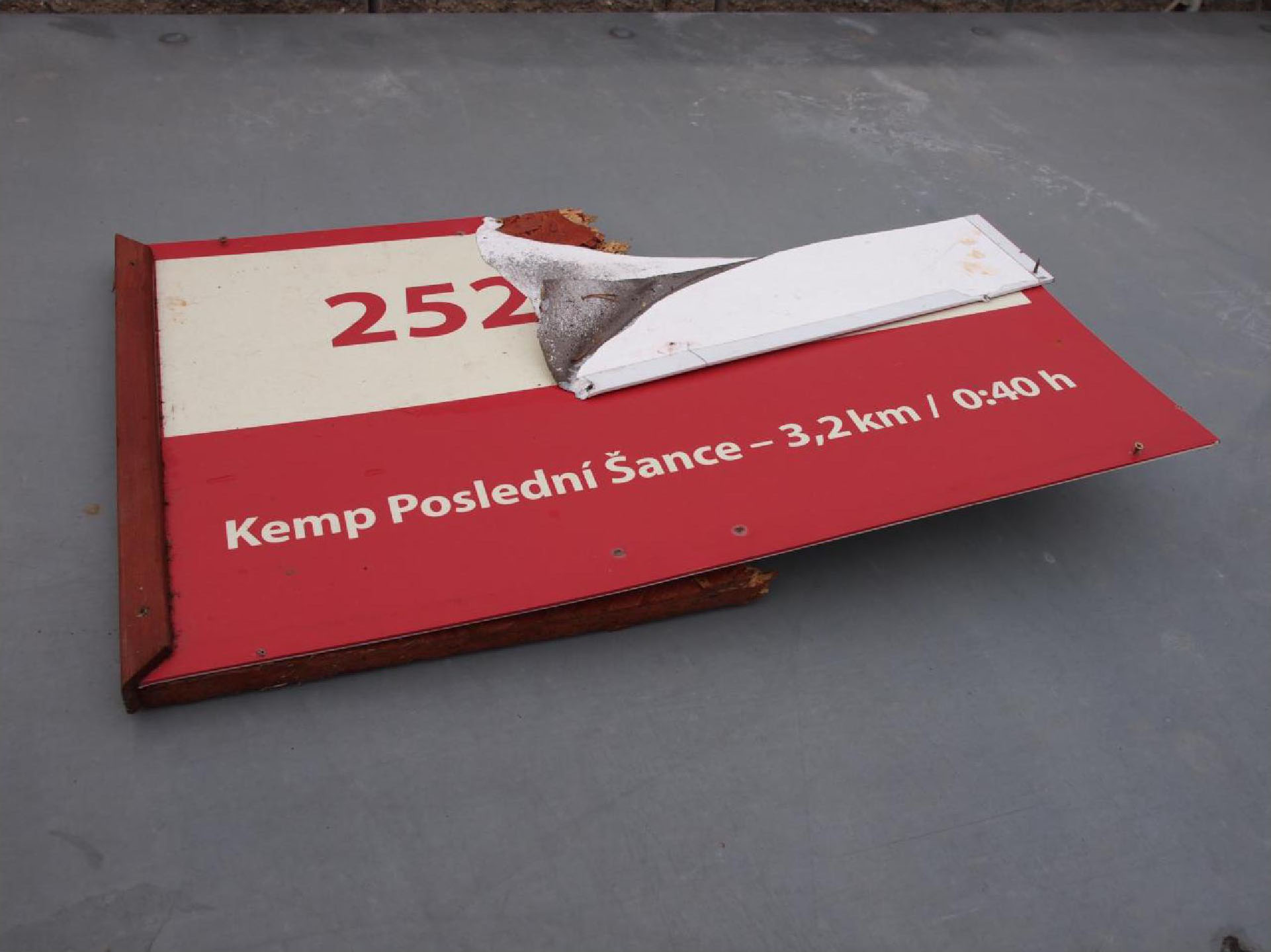 Kilometrová tabule zničená povodní