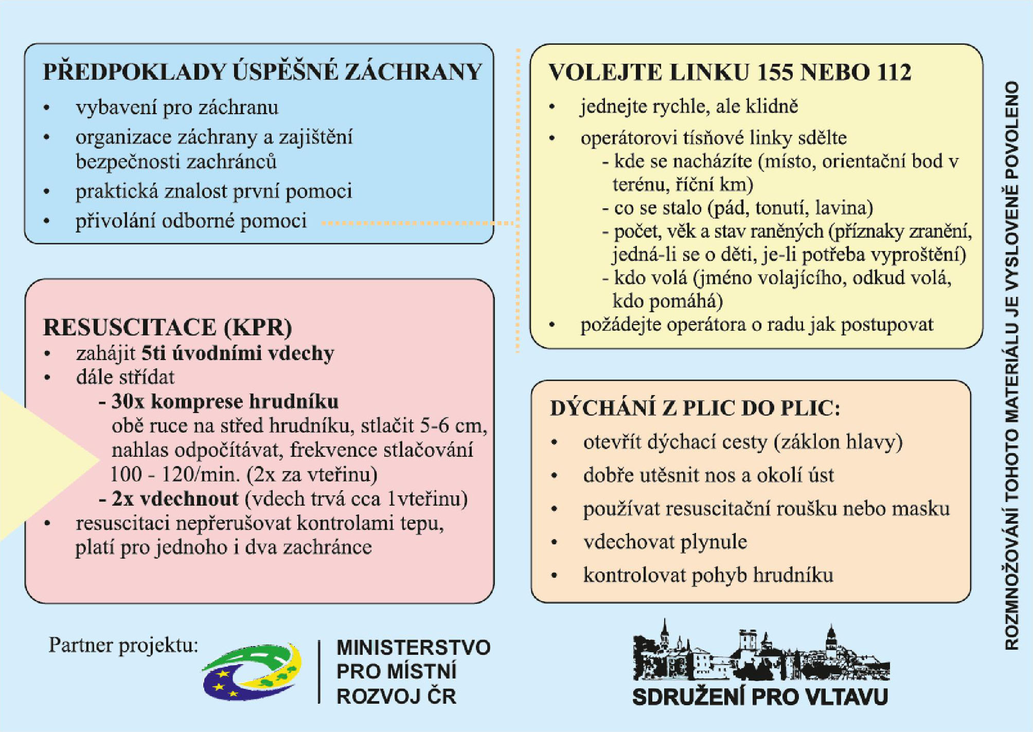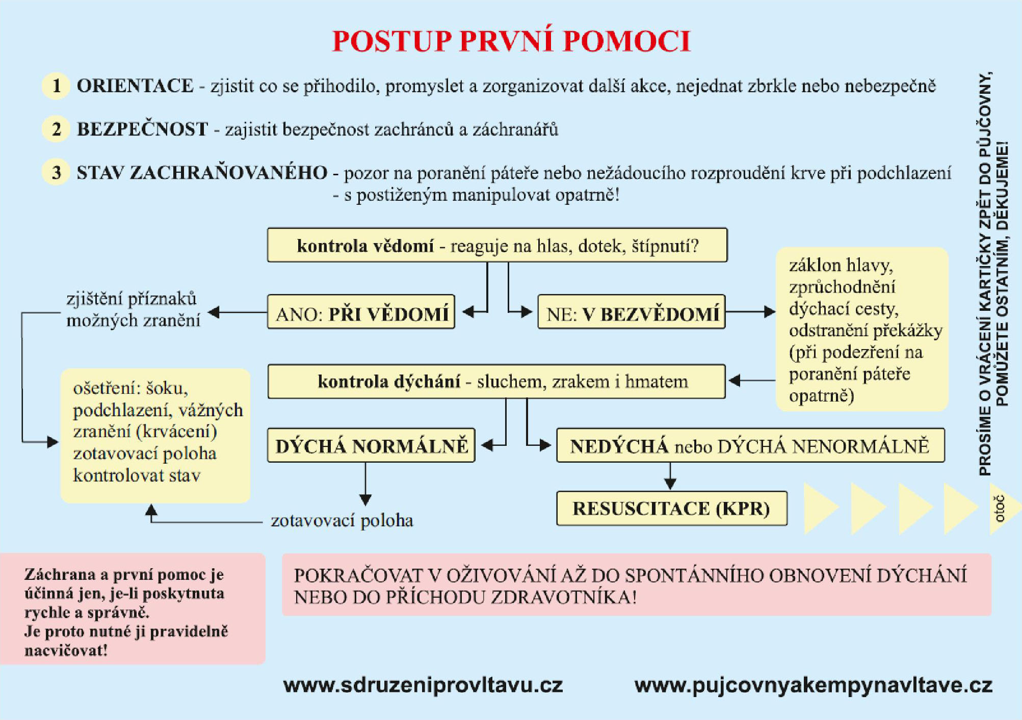 Po několika konzultacích s lékaři záchranné služby a s členy vodní záchrany byly navrženy a vyrobeny kartičky zdravotnické první pomoci. Tyto kartičky byly a v budoucnu ještě budou zdarma vydávány vodáckými půjčovnami společně s plavidly.