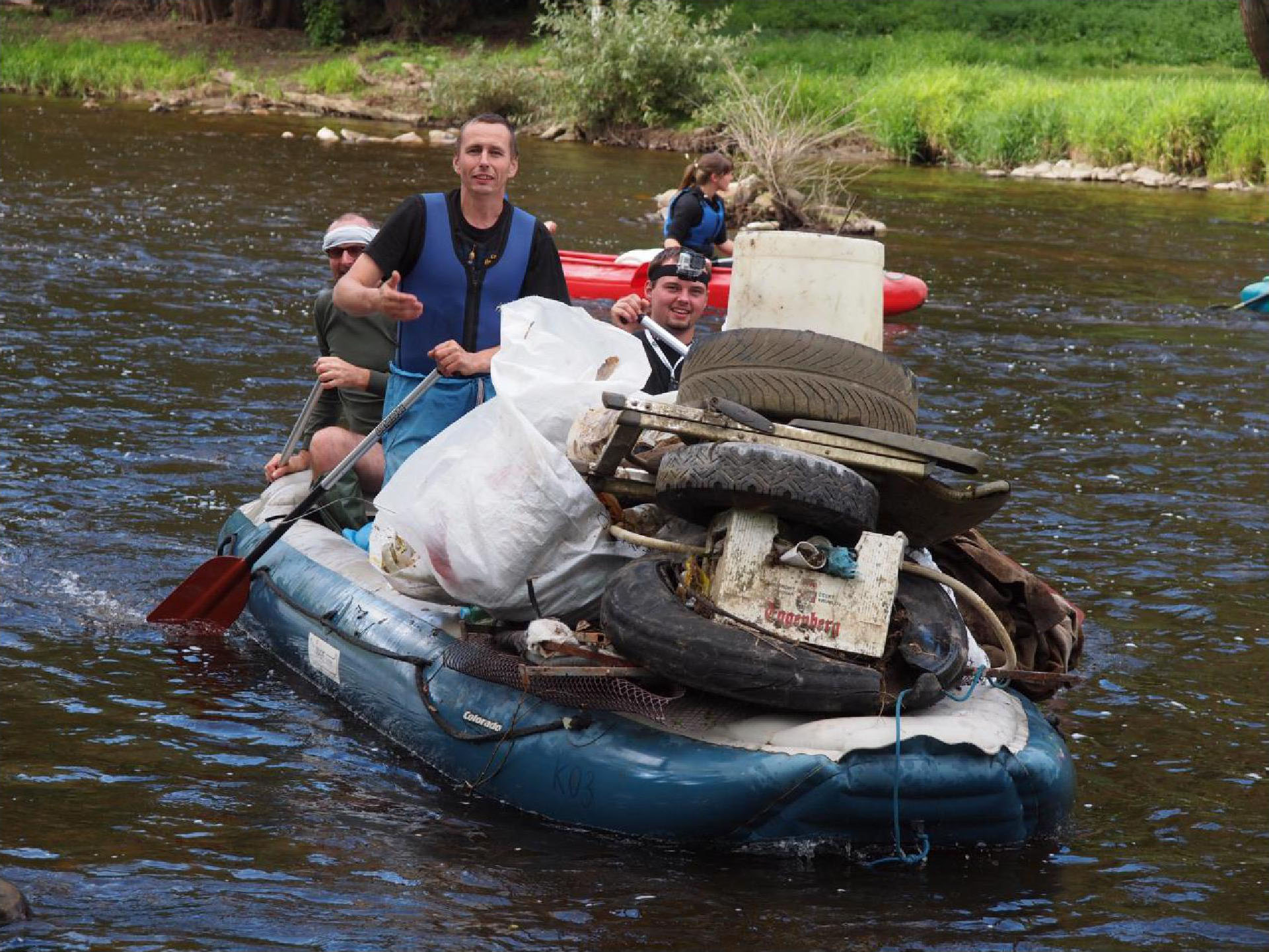 Správci jednotlivých úseků řeky pravidelně vyváželi odpadky z popelnic umístěných u jezů a informačních tabulí.