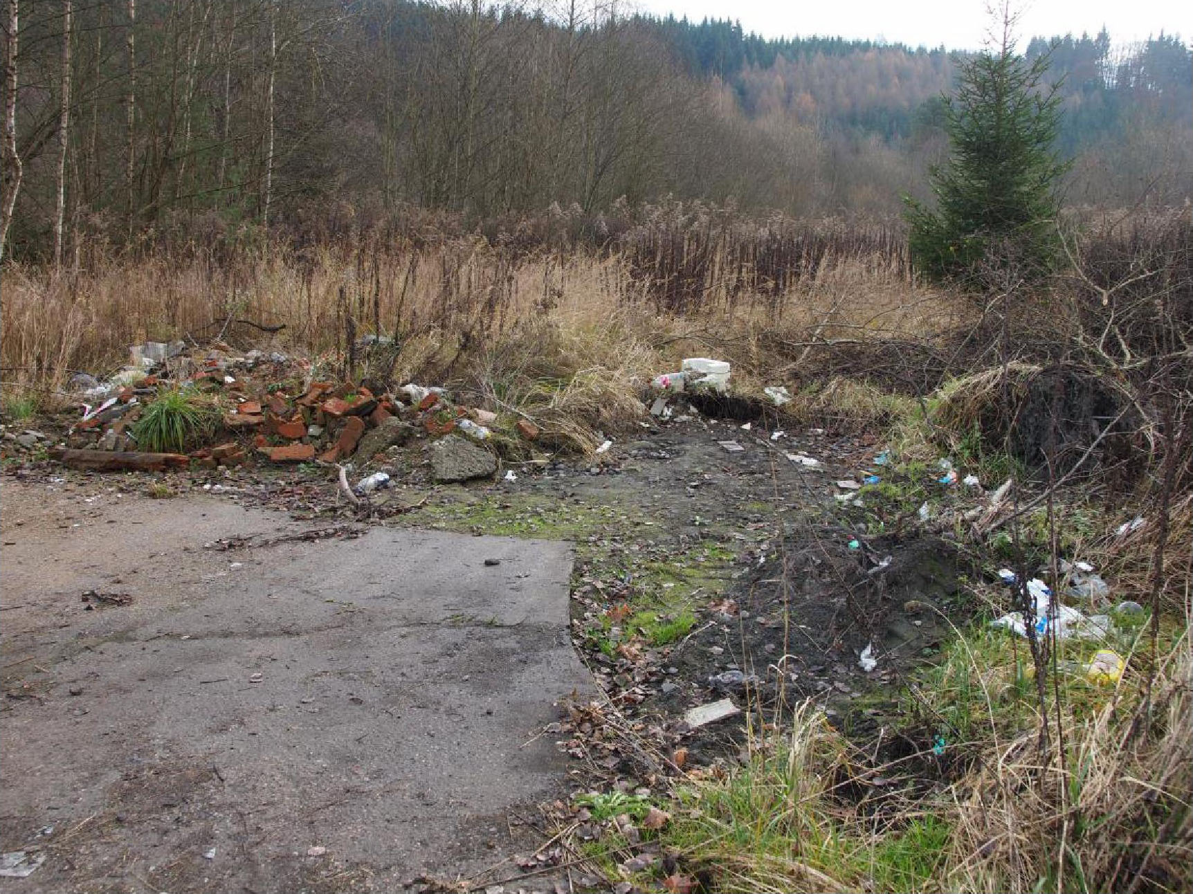 - Na skládce v Jistebníku byl plastový odpad již odplaven do údolí a kamenný zásyp je čistý.